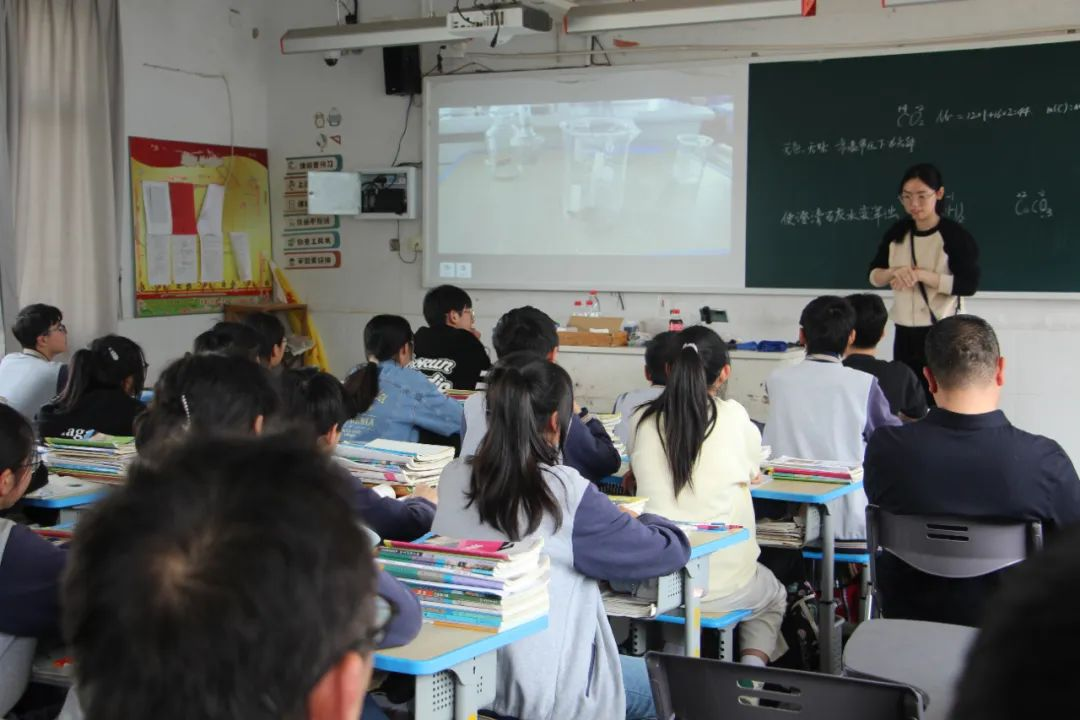 杜华老师带领学生党员观摩了寿老师执教的化学课《二氧化碳》。整节课内容紧凑,教学环节层层递进,逻辑清晰有序,信息技术操作娴熟,在教学课件与演示实验中切换自如。寿老师通过演示五个实验,让学生在实验观察中学习了二氧化碳的各种性质与特征。