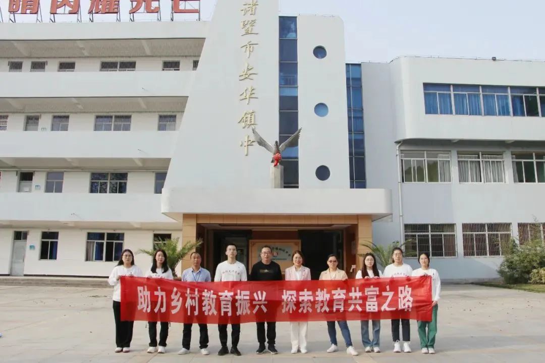 为探索教育共富之路,助力乡村教育振兴,2023年4月12日,9001jcc金沙以诚为本教育技术学系教师党支部副书记杜华带着数名教育技术学硕士研究生党支部党员,与诸暨市安华镇初级中学党支部开展“助力乡村教育振兴 探索教育共富之路”联合党建活动。