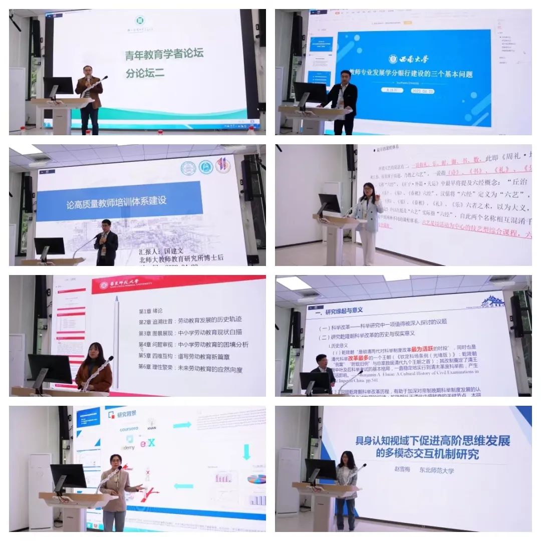 香港大学罗九同、莫斯科罗蒙诺索夫国立大学汪玄、马来亚大学张毓婷、华东师范大学马银琦、华东师范大学潘士美、华东师范大学李政林等六位博士依次以《理解数字媒体“一心多用”对青少年的影响》《俄罗斯爱国主义教育》《信息化时代背景下高校智慧教育环境构建路径研究》《高校社会服务贡献评价的探索性研究》《“双减”政策背景下变相违规课外补习问题研究》和《教学想象:不确定性视域下教师教学方式的变革》为题进行了分享。