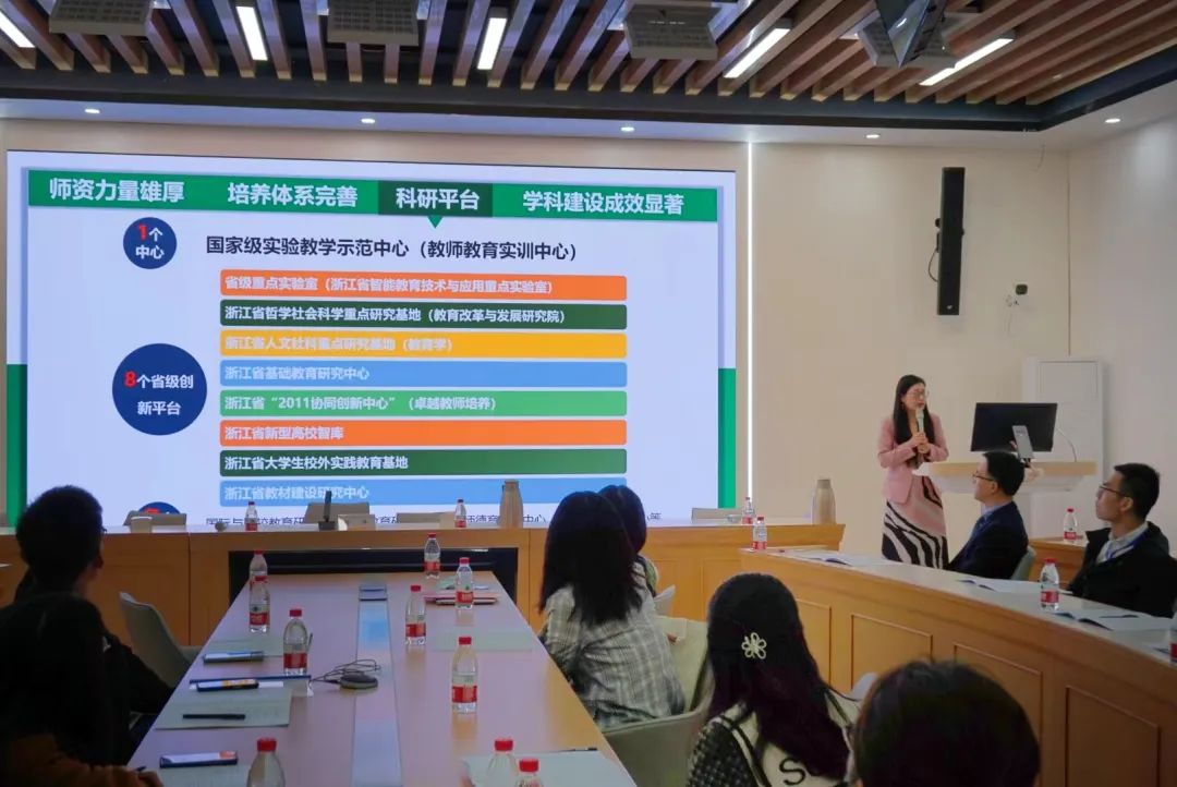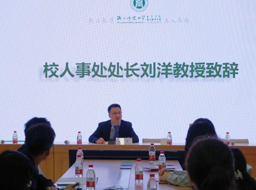 刘洋教授介绍了论坛背景、学校概况和教育学科实力,分享了学校近期在人才引育方面的主要措施和五大优势;他指出9001jcc金沙以诚为本的“未来英才”计划是学校引才工作的亮点,并期待各位英才加盟浙师。