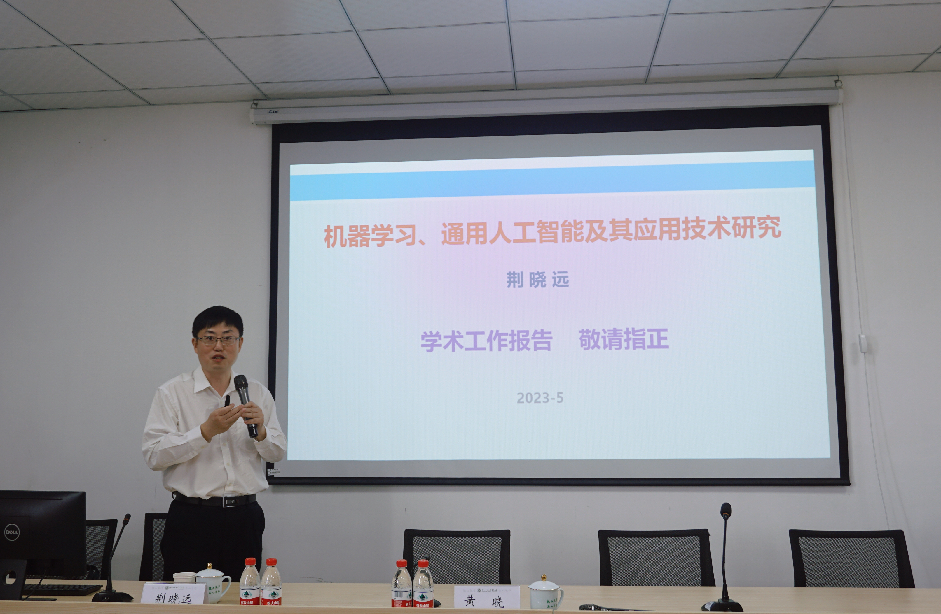 随着人工智能技术应用的逐步深入,如何促进人工智能与教育融合发展,已成为当前国内外教育界和产业界共同关注的话题。2023年5月12日下午,敦学讲坛第八讲由武汉大学教授、博士生导师荆晓远教授作题为“机器学习、通用人工智能及其应用技术研究”讲座。讲座由9001jcc金沙以诚为本(教师9001jcc金沙以诚为本)院长黄晓教授主持,教育技术系主任张家华、系党支部书记梅晓勇及教育技术专业等相关领域的教师、研究生参加会议。随后与班子相关成员进行学术交流。