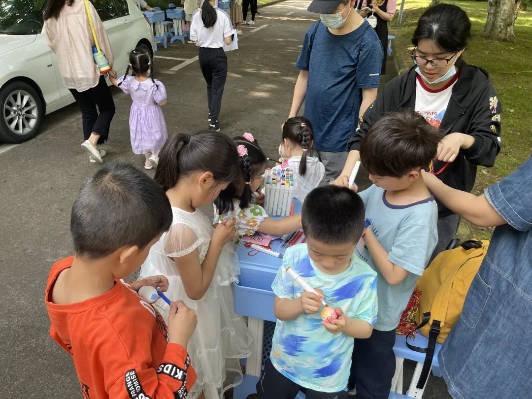 在“制作彩蛋”游戏处,只见小朋友们每人领一个鸡蛋,用五颜六色的水彩笔在鸡蛋上涂鸦。看小朋友们画的多么专注啊!