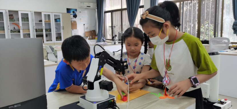 本次活动用“科技”点亮六一,增加了信息科技元素,让孩子们与智能机器人、机械臂、3D打印笔等“零距离”接触,体验了“别样”的儿童节。