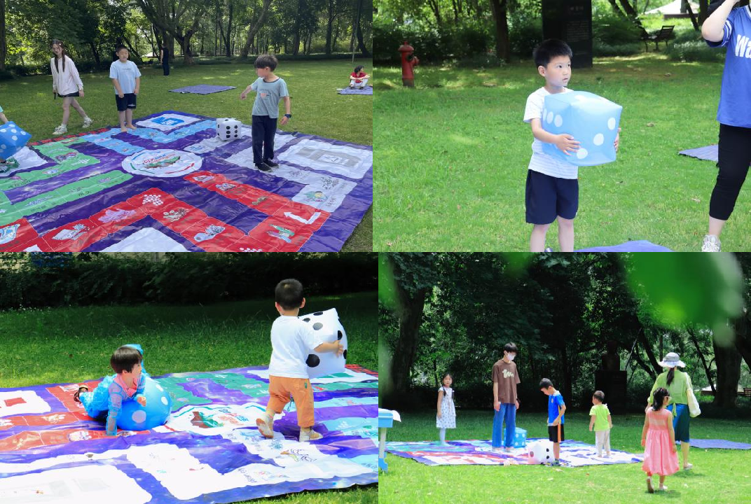 很多小朋友被五颜六色的巨大的飞行棋盘吸引住了,参与游戏的小朋友们,通过掷充气骰子轮流走步数的方式,向终点发起冲刺。看小朋友们明媚的笑容,就知道这个真人飞行棋游戏太好玩啦,让人乐在“棋”中。