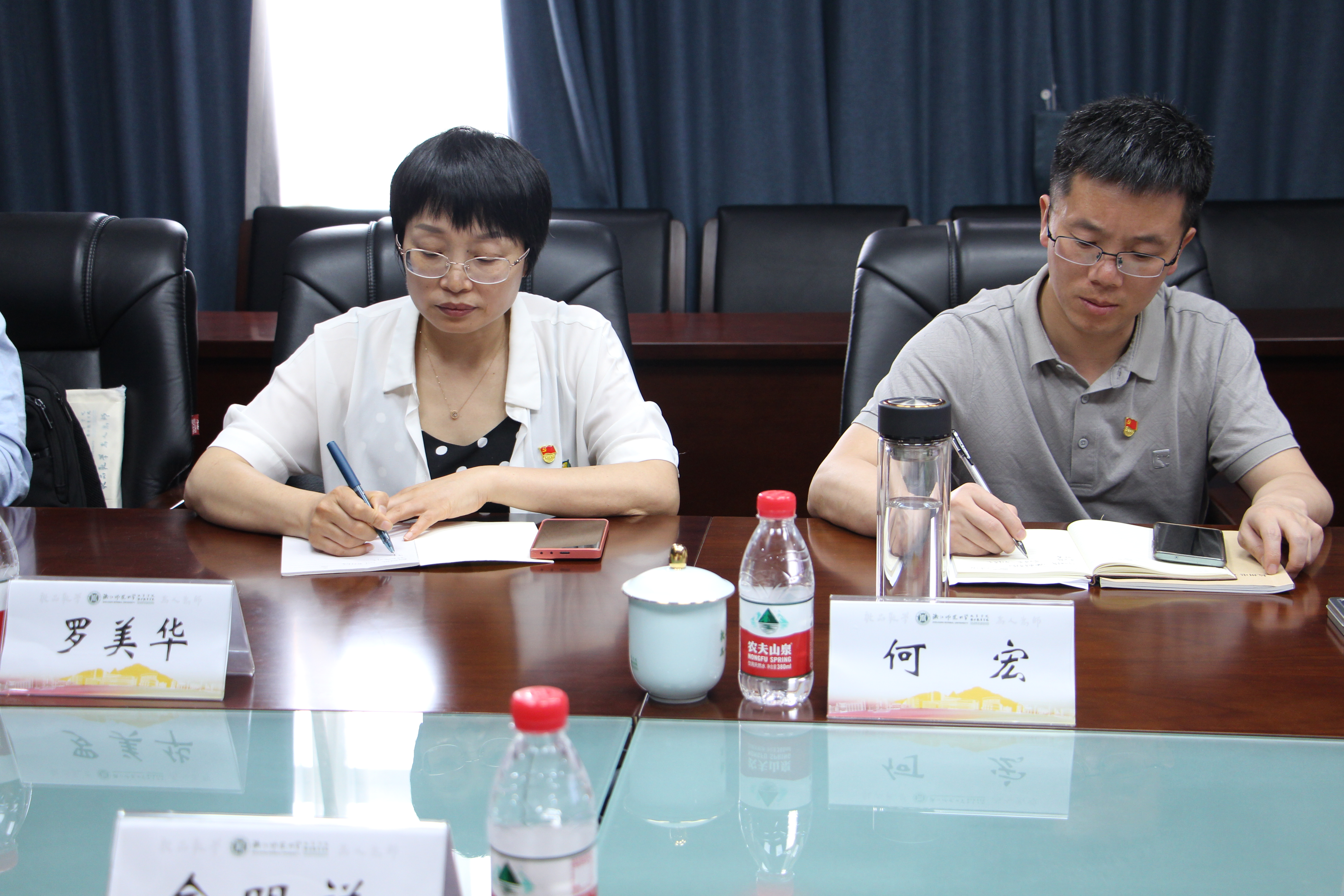 座谈会上,俞明祥书记首先代表学院对罗美华书记、何宏书记一行的到来表示热烈欢迎,并介绍了金沙以诚为本官网学科建设、师资队伍、科学研究、人才培养、社会服务、党建思政等方面的基本情况;希望双方深入交流党建工作方面的有效做法和成功经验,相互借鉴,共同提高,共促发展。