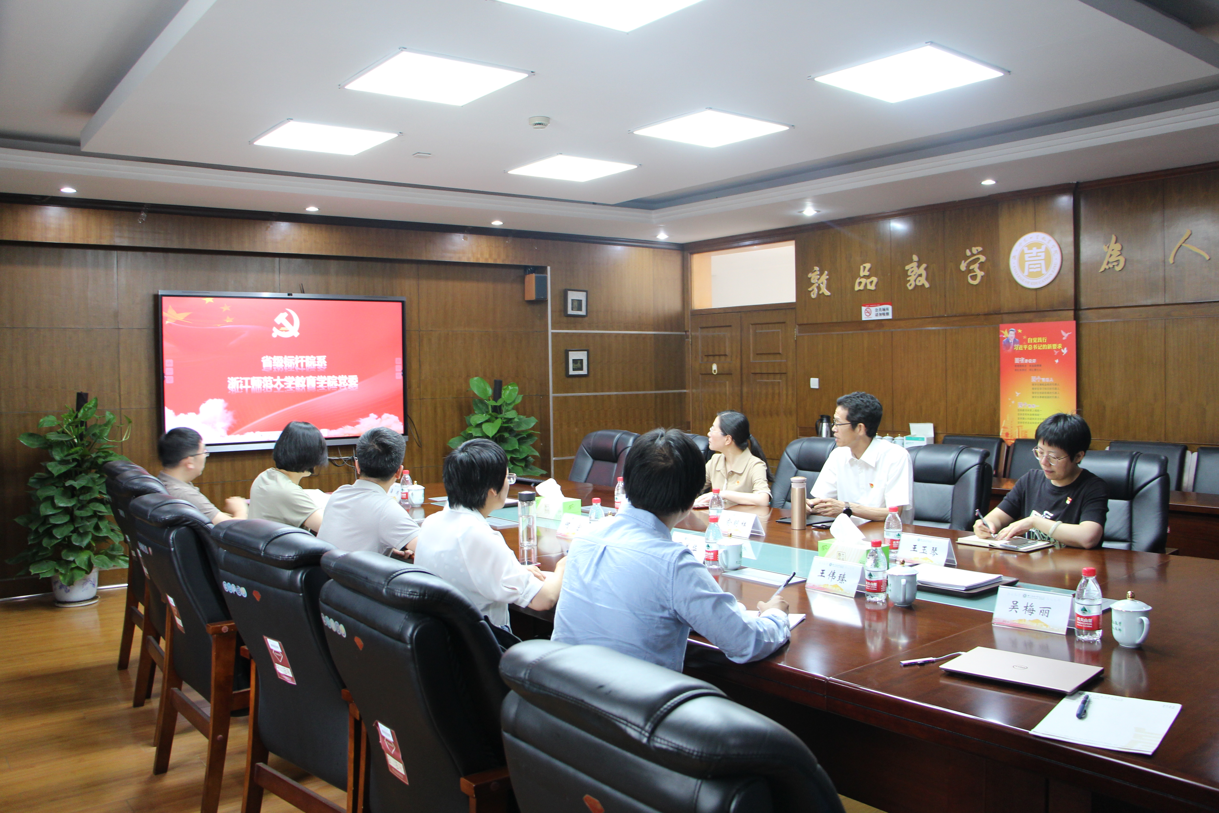 俞书记指出自主题教育开展以来,9001jcc金沙以诚为本党委牢牢把握“学思想、强党性、重实践、建新功”总要求,坚持学思用贯通、知信行统一,精心谋划、统筹安排、高效落实,以“六个高质量”扎实推动主题教育往深里走往实里走;并介绍了“下好‘五子棋’,打造教育共富样板”“大中小学思政一体化,共研育人‘同心圆’”“构建具有教育特色的大思政体系”等典型案例,并提出了关于加强新时代高校基层党建“双创”工作的若干思考。