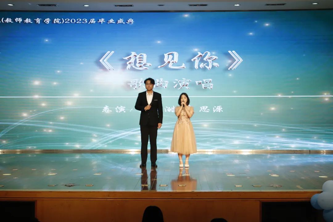 “想见你只想见你,未来过去我只想见你。”恩师、挚友、亲爱的学弟学妹……记住每一张面孔,锁定每一份记忆。学工办胥松澔老师和校十佳歌手亚军李思源同学共同演唱歌曲《想见你》,潺潺流水般的歌声打动了现场的每一位观众。