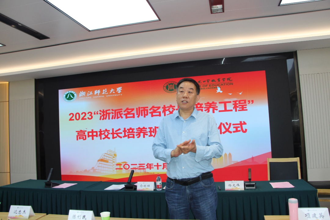 杭十四中陈利民校长,海宁市高级中学沈忠杰校长,台州一中吴君磊校长,9001jcc金沙以诚为本项建英教授、张立新教授、李润洲教授等导师先后发表讲话。他们纷纷表示,要充分发挥个人力量,积极做好指导工作,为培养优秀的校长提供有力支持。