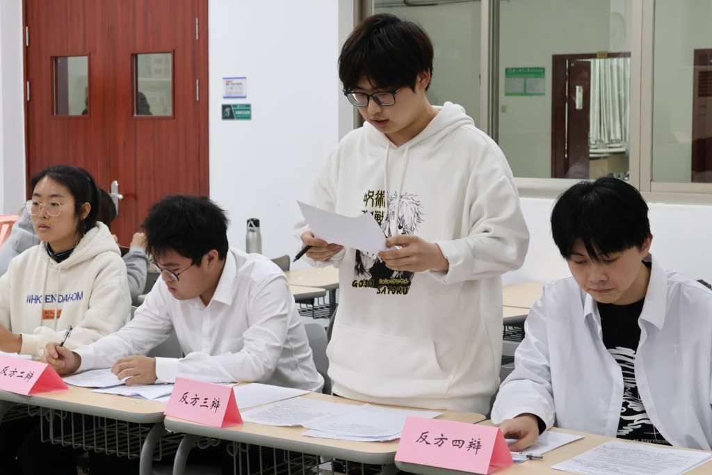 在评审环节,各场评委都对比赛进行了针对性点评。第一场比赛的评委指出,正方的定义范围更加宽泛,反方的“自由”底线较高;第二场比赛中,评委指出双方都运用了合理贴切的情境,但仍需进一步通俗易懂地比较辩题中的利弊;在第三场比赛,评委分别对正方和反方的论证作出了点评,同时为辩手们列举了可行的辩论技巧。经过评委的点评,同学们进一步加深对辩题的理解,收获诸多辩论的经验,可谓是受益匪浅。
