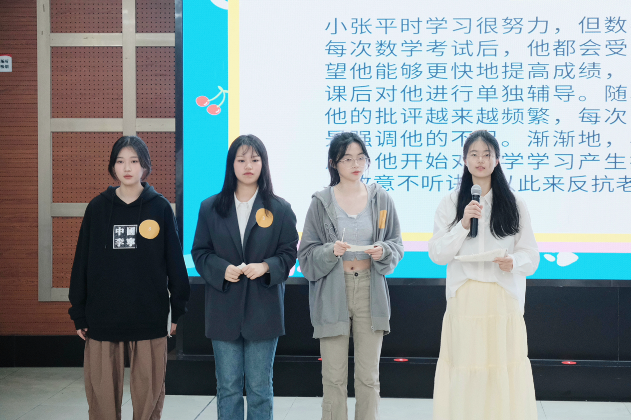 在最后的“案例分析”环节,每支队伍全面分析案例主人公的心理状态,积极引用专业的心理理论知识,给出了具有建设性和实践性的解决方法,不仅表现了他们逻辑清晰、从容对答的专业水准,还带动了在场的同学深入思考心理问题。