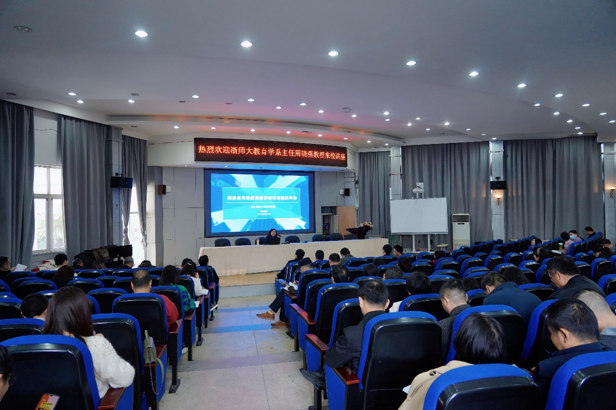 周晓燕教授面向箬横镇中全体教师作了题为“例谈省市级教育教学课题的申报”专题讲座。她指出,科研课题成功申报包含四个重要因素,即选题好、基础扎实、论证质量高以及文本可读性强。她结合自己多年指导中小学教科研课题的成功经验,从“怎样进行课题选题”“好的选题有哪些特征”“好的选题如何进行表述”“课题论证的核心问题是什么”“课题申请报告如何撰写”等5个方面进行详细讲解与指导。她提出,课题的选题可以从研究目的、研究内容、研究基础、研究前沿等方面确定。她强调,好的课题应该具备“实”“新”“深”“巧”“妙”等特征,好的课题表述应该是明确的、新颖的、恰当的、普适的。课题题目的表达要经过“判断”“推敲”“考证”“评估”四个环节。针对“课题申报报告如何撰写”这一困扰很多中小学教师的难题,她结合案例,分别从“选题”“文献综述”“选题意义的表述”“研究目标的确定”“研究思路”“研究方法”“研究基础”“预期研究成果”“研究进度安排”等9个方面逐一进行细致讲解与阐述。