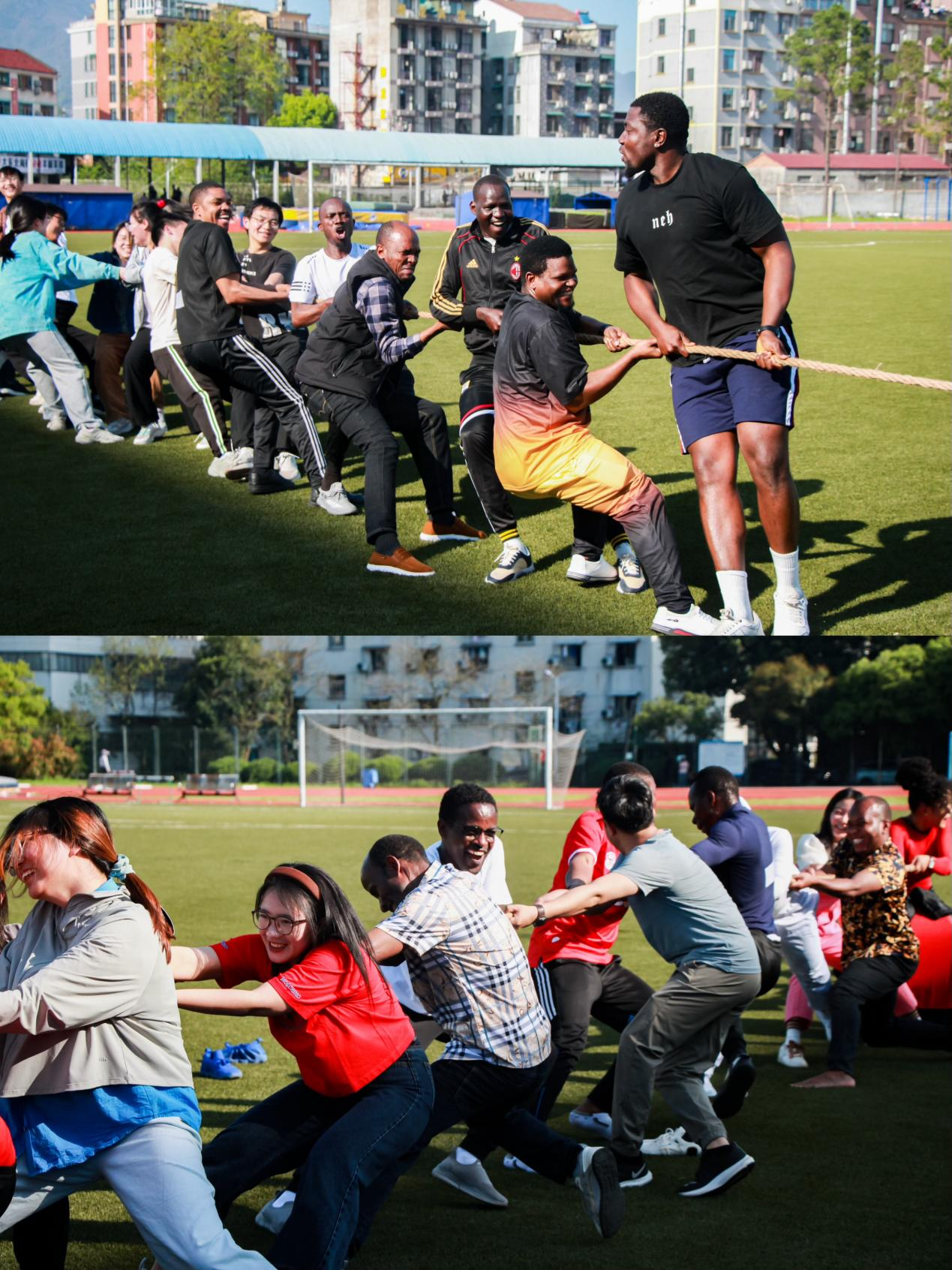 3月30日,9001jcc金沙以诚为本在北田径场举行留学生趣味运动会。本次趣味运动会包含五个项目,即跳绳、运送乒乓球、撕名牌、背靠背运球、拔河,旨在丰富留学生的课余生活,帮助他们在运动中锻炼身体,增强体质。