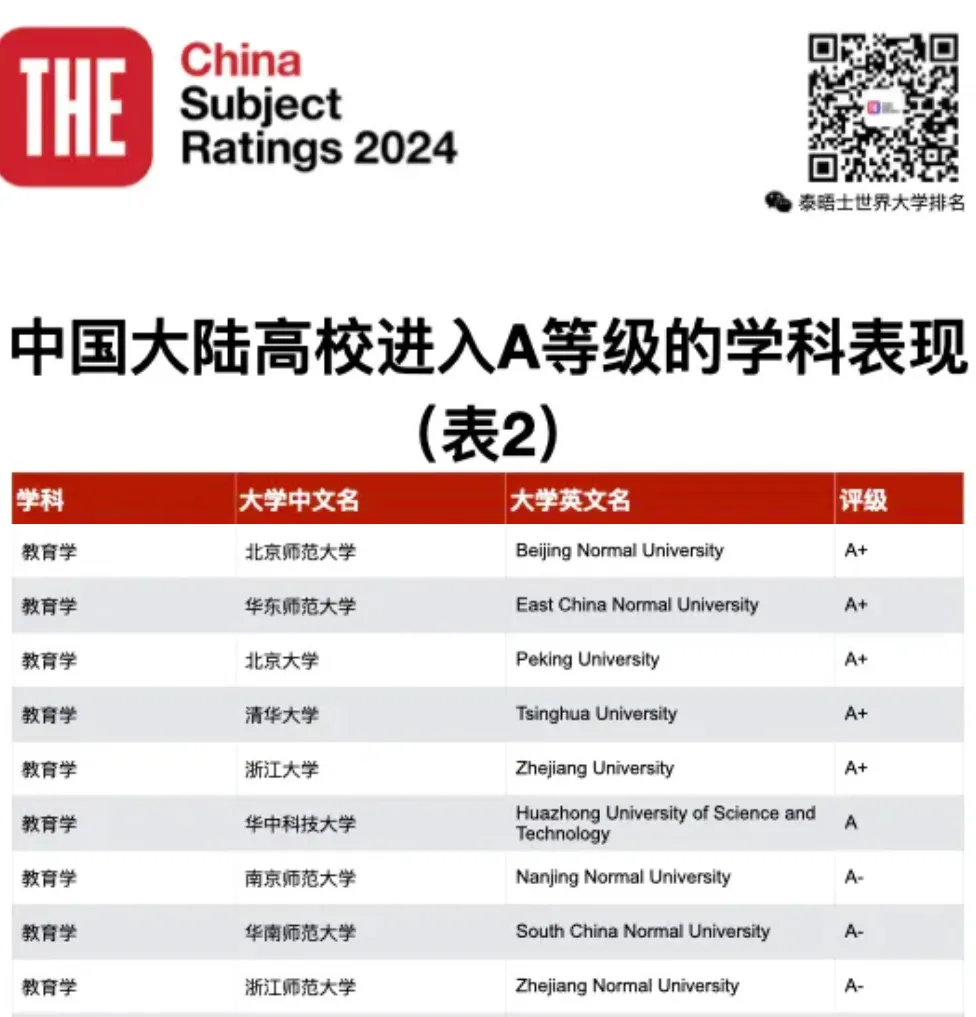 浙师大教育学在近日揭晓的2024年泰晤士高等教育中国学科评级中获评“A-”。本次评级的数据来自2024年度泰晤士高等教育世界大学排名、2023年和2024年度泰晤士高等教育中国学术声誉调查、2022年和2023年的泰晤士高等教育学术声誉调查以及爱思唯尔(Elsevier)文献计量数据库。本次评级对1885所研究型大学的83门学科进行评估,提供了全球高校学科最详细、最严格和最全面的评估。