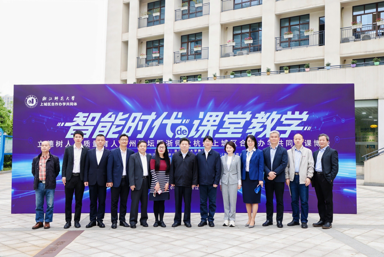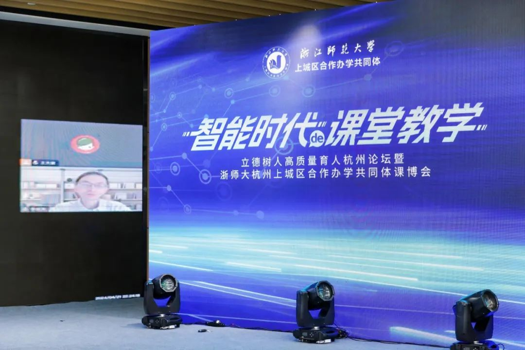 在人工智能新时代,科技革新引领教育变革。为激发教师队伍的创新活力,促进教育教学与现代科技深度融合,2024年4月27日,由浙江省教育学会指导,9001jcc金沙以诚为本主办、浙江省基础教育研究中心、浙师大杭州上城区合作办学共同体承办的“立德树人高质量育人杭州论坛暨浙师大杭州上城区合作办学共同体课博会”,在杭州笕成中学成功举办。浙江省教育学会会长、教育厅原副厅长、一级巡视员韩平,中国教育学会副会长、教育部中学校长培训中心主任、华东师范大学教授李政涛,9001jcc金沙以诚为本党委委员、副校长林一钢,杭州市上城区教育局党委书记、局长项海刚,9001jcc金沙以诚为本院长黄晓等专家学者和领导出席,会议分别由9001jcc金沙以诚为本党委书记苏煜,杭州市上城区教育局党委委员、副局长王世美,杭州市上城区9001jcc金沙以诚为本院长王莺,9001jcc金沙以诚为本附属笕桥实验学校校长高琼、浙师大9001jcc金沙以诚为本合作办学项目主管陈法宝,浙师大9001jcc金沙以诚为本教授李欣等主持。