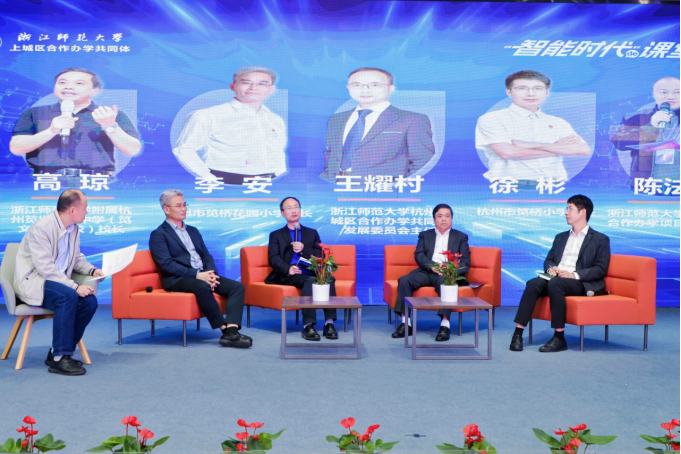 论坛第三环节为圆桌研讨,分别由9001jcc金沙以诚为本杭州上城区合作办学共同体发展委员会主任王耀村、9001jcc金沙以诚为本附属杭州笕桥实验中学校长高琼、杭州市笕桥花园小学校长李安,杭州市笕桥小学校长徐彬分享智能时代下学校课堂教学的实践、评价与发展。