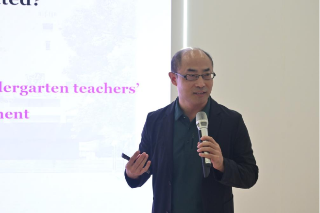 尹弘飚作了题为“Are Happy Teachers also Efficacious and Committed? As Social Cognitive Analysis”的报告。尹弘飚首先回顾教育心理学史著名学者Albert Bandura的理论,引出“self-efficacy(自我效能感)”这一重要概念。他强调self-efficacy对个体的重要影响包括认知、动机、情感和决策过程等方面,详细介绍self-efficacy、sources、consequences之间的相互关系。他表示Albert Bandura可能低估了情绪以及positive affective states在个人自我效能感生成中的作用。通过展示数据分析结果,他指出自我幸福感高的幼儿园教师对自己更有信心,并更愿意投入教学,但反过来并非如此,关键在于教师们如何理解“successes”。