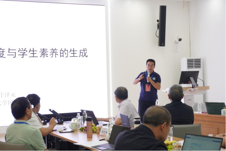 于泽元在题为《教师的概念尺度与学生素养的生成》的报告中阐述了教师如何扩展学科概念尺度,以影响和促成学生素养的形成。他指出,随着课程改革的推进,教育正从传统的知识本位向素养本位转变,而素养本位教育的关键在于从学科大观念走向内在大观念。于院长强调,素养本位教育对教师的专业素养提出了更高要求。借鉴布鲁纳的认知结构理论,教师应运用大尺度学科概念进行大观念教学,以更广阔的视野和更丰富的联结引导学生构建认知模型。运用大尺度学科概念应当成为现代教师必备的素养。为了扩展和转化学科概念的尺度,教师需要纵向深化学科内知识,同时横向链接学科内与学科间的知识,将学科概念与更广阔的时空相联结,实现学科概念的实践转化和生命转化,进而提升学科教学效果。