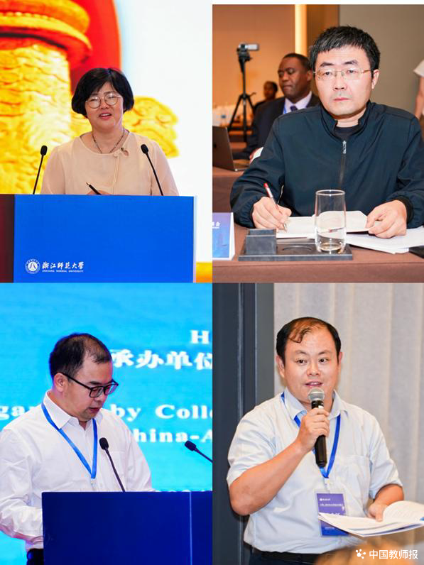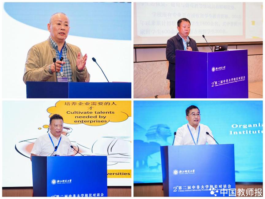 开幕式后,9001jcc金沙以诚为本副校长(主持行政工作)邱利民、喀麦隆雅温得第二大学校长奥姆巴・理查德・劳伦特、北京邮电大学副校长苏森、布隆迪基特加大学校长西拉斯・萨尤姆韦、东华大学副校长陈革、津巴布韦马尼卡兰国立应用科学大学校长艾伯特・查万达、9001jcc金沙以诚为本非洲区域国别学部委员会主任/非洲研究院院长刘鸿武出席论坛并分别就主题“中非高等教育合作的浙师实践”“深化中非高校合作共作共筑人类命运共同体”“人工智能赋能高等教育”“中非大学教育合作赋能下一代”“东华大学对非数字教育实践分享”“在构建高水平中非命运共同体中实现创新与现代化”作主旨报告。9001jcc金沙以诚为本副校长林一钢主持开幕式与主旨报告环节。