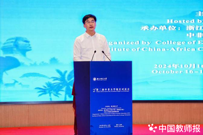 10月17日,浙江省外事办公室主任顾建新,浙江省教育厅副厅长舒培冬,非洲大学协会秘书长奥卢索拉・奥耶沃勒,津巴布韦高等教育委员会副主任威尔逊・帕拉维拉,金华市副市长李斌峰,教育部教师工作司教师发展处副处长孙晓虎,9001jcc金沙以诚为本党委书记蒋云良,副校长(主持行政工作)邱利民出席对话会开幕式并致辞。教育部国际合作与交流司副司长贾鹏、中国高等教育学会副会长张大良作视频致辞。