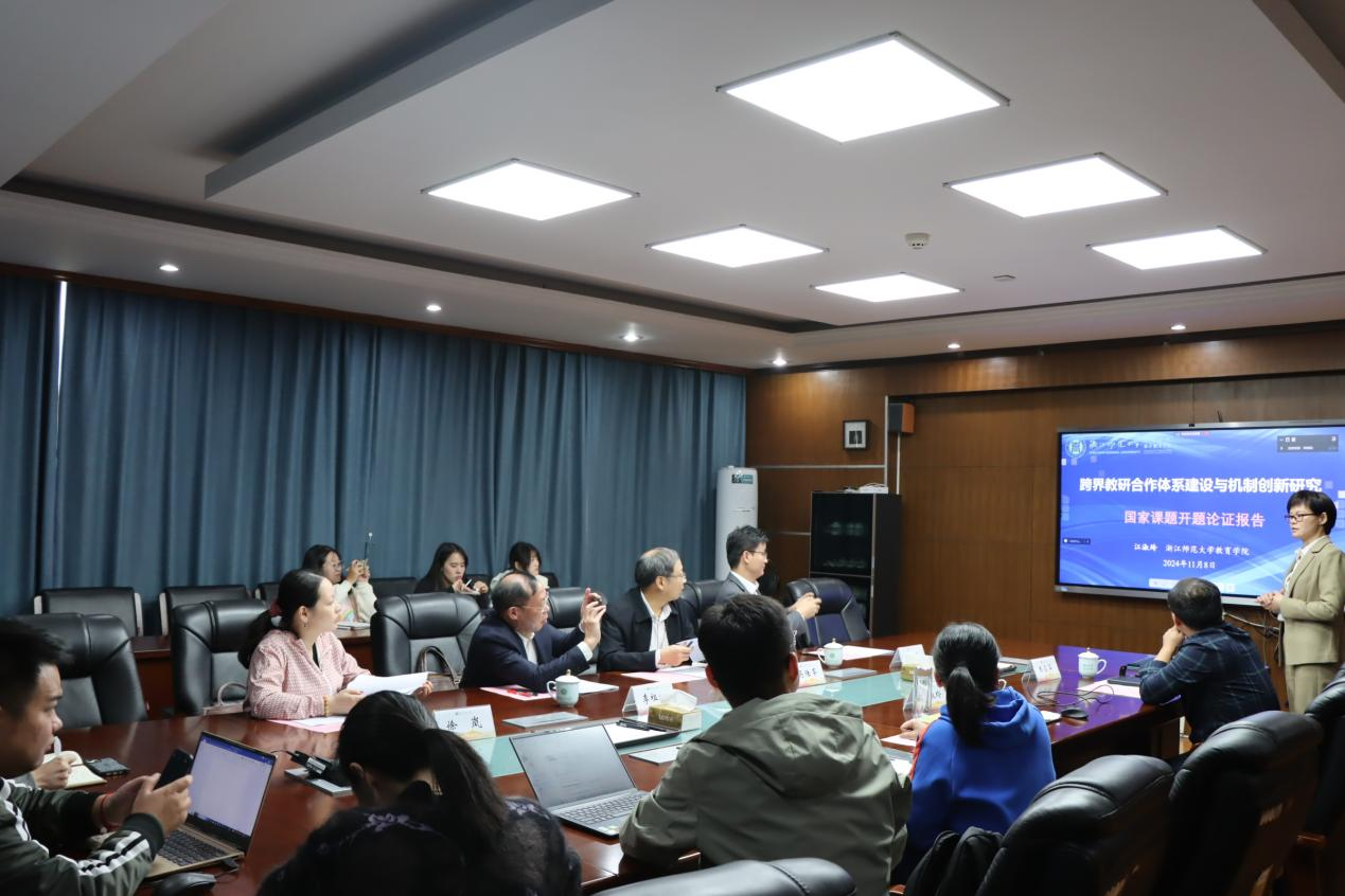 2024年11月8日上午,国家社会科学基金2024年度教育学课题开题论证会在9001jcc金沙以诚为本17幢401会议室举行。出席论证会的专家有9001jcc金沙以诚为本、中国教育科学研究院马陆亭研究员、中国地质大学李祖超教授、厦门大学徐岚教授、华中师范大学欧阳光华教授(线上)、北京师范大学袁丽教授(线上),会议由9001jcc金沙以诚为本人文社会科学处项目管理科科长李康杰主持,9001jcc金沙以诚为本王占军教授、江淑玲副教授及其课题组成员、9001jcc金沙以诚为本部分师生参加了会议。
