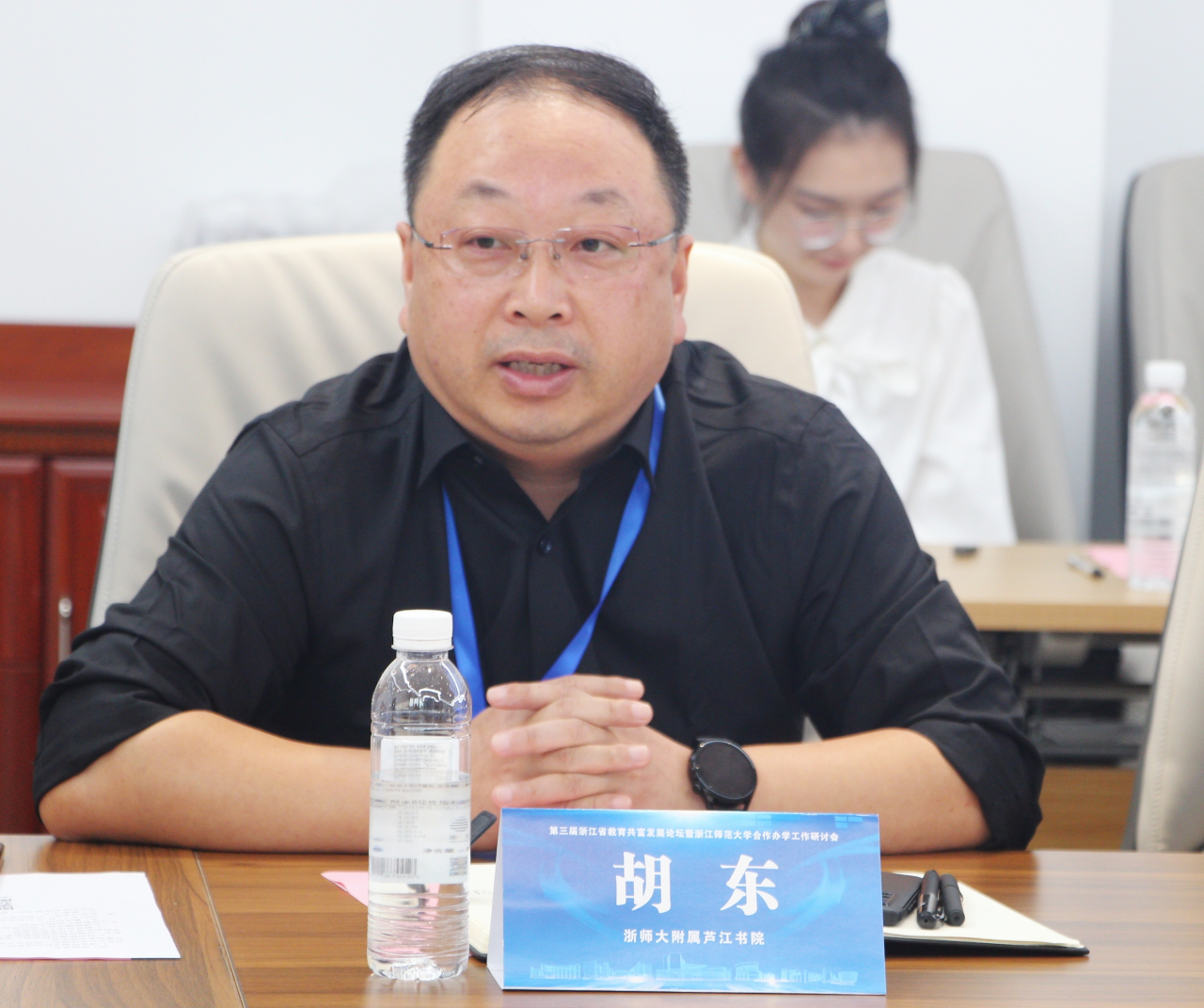 浙师大附属芦江书院书记、校长胡东表示,自合作以来,学校在教师科研能力提升和师资队伍培养上获得显著成效,在学校文化顶层设计和课程重构方面,为教师和评价改革提供了包括诊断式指导、沉浸式参与和校际交流活动,取得了显著成效。