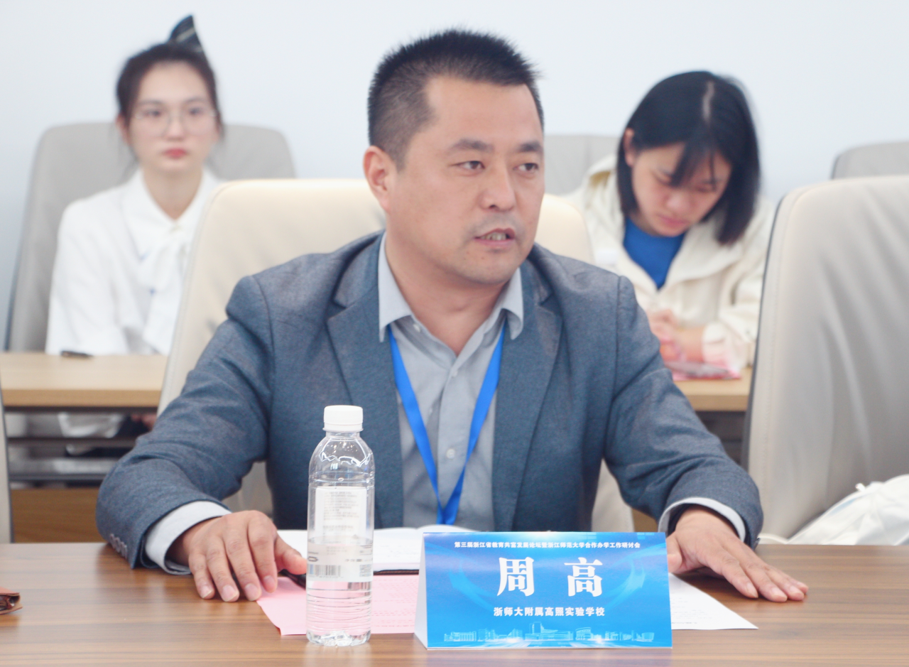 浙师大附属高照实验学校校长周高表示,与浙师大开展合作办学以来,学校在校园文化、教学管理和特色发展等方面取得了显著进步。学校将继续加强精准教学研究、提升教师科研能力、完善体系建设、提升教师专业水平,深化与师大的合作,进一步推动学校的发展。