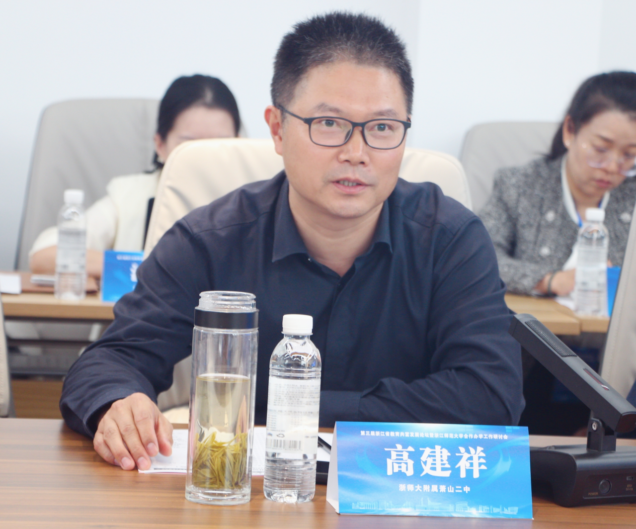 浙师大附属萧山二中校长高建祥表示与师大合作办学以来,在学校的顶层设计、发展规划、特色发展方面取得了良好的成效和社会反响,特别是教师的科研引领和教学改进,浙师大提供了极大的支持。后续将致力于提升办学特色和教育质量。