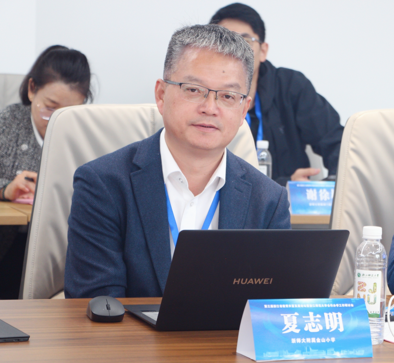 浙师大附属金山小学校长夏志明介绍了学校开展合作办学以来的发展情况,强调合作办学对打造品牌建设、提升学科研究和教师科研水平、教师发展和教学质量的方面的重要性。提出建立合作渠道、优化专家驻点和分层次分类指导的建议,以提高教育合作的效率和效果。