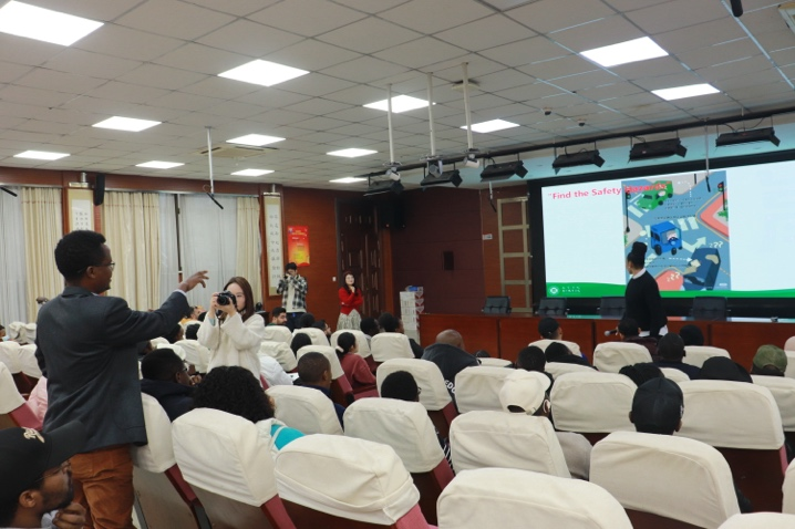 现场还举行了“安全隐患来找茬”抢答有礼小游戏,留学生们屏气凝神,踊跃抢答,在紧张而欢快的气氛中,留学生们对安全知识有了更直观的感受和理解。