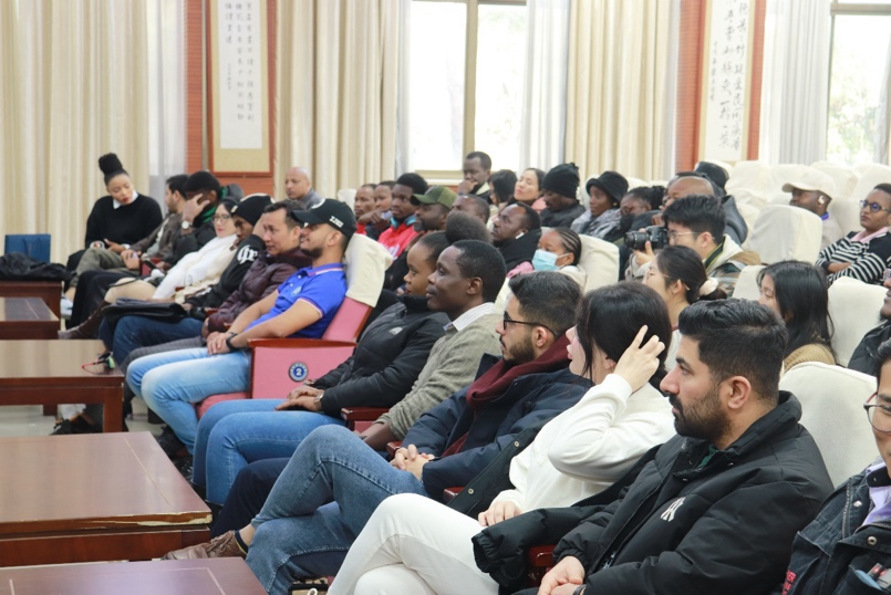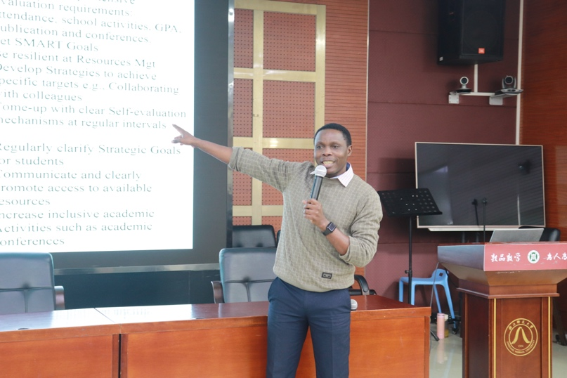 首先,刘颖从综合测评(下称综测)考核节点、综测评价细则、奖学金等级分类等方面,详细讲解了留学生综测中的各项注意事宜,并提醒大家平衡好学业成绩、课外活动和社会实践,做到全方位发展。随后,尼日利亚籍IBEAKAMMA CHINAZAEKPERE UGOCHINYERE、缅甸籍HTET HTET SANDY、孟加拉国籍AHMED JONAID、赞比亚籍KANGWA DANIEL四位优秀留学生代表结合自身求学经历分享了课程学习、科研竞赛等方面的经验,为大家提供借鉴参考。