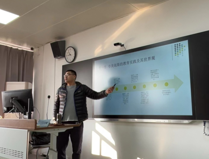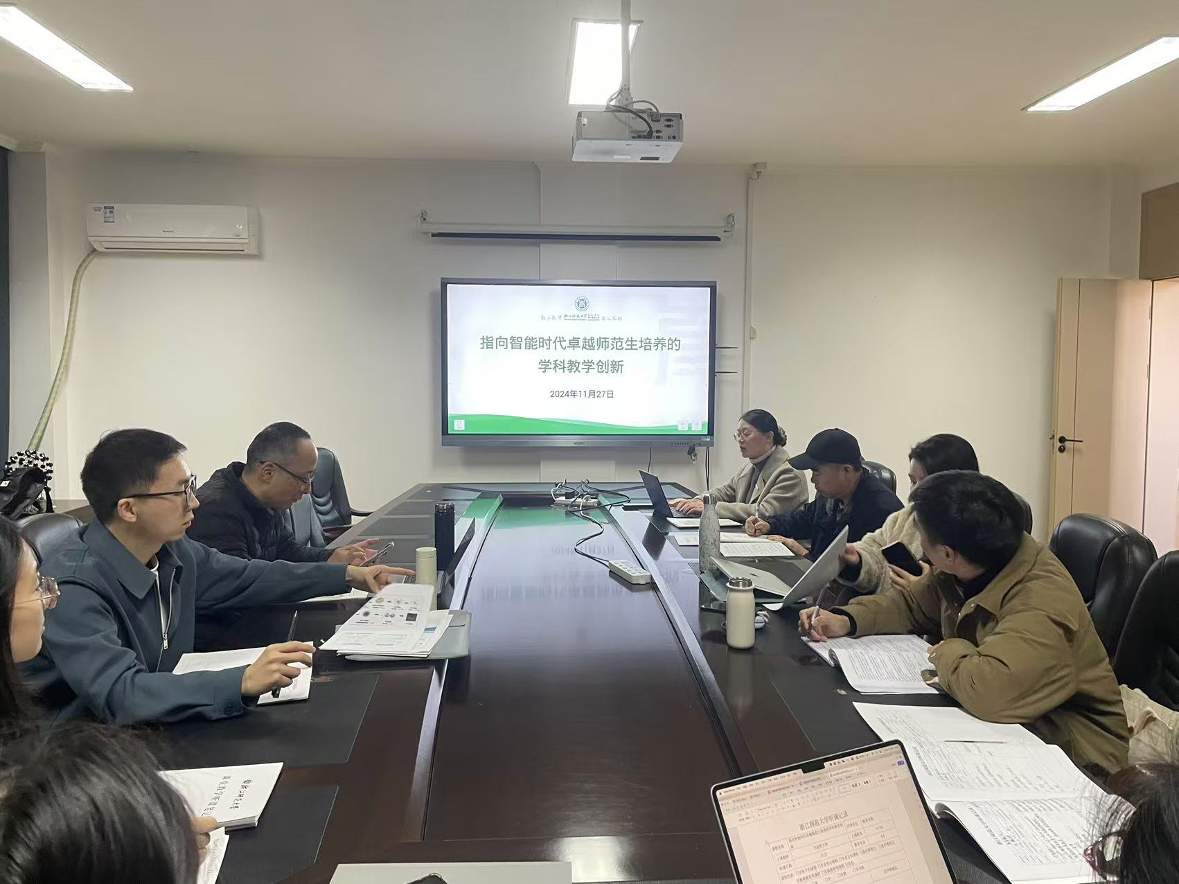 课程与教学系在17-701教室举办了教研活动。活动分为两个阶段:首先,薛松博士进行了教学展示,他从今年的诺贝尔化学奖入手,借助学习通平台,深入探讨了模型的定义、分类、功能以及建模的相关理论。老师们从教学内容的精简、教学情境的创设、课程思政的融入、学生主体性的发挥以及教学论学科特色的展现等多个维度,对薛博士的模拟授课进行了细致的评价,为薛博士12月份参加学校青年教师教学技能大赛提供了宝贵的建议。接下来是公开课的教学研讨环节,丁晨晨、郑倩贞、任睿、谷亚和尚来旭五位博士首先对展示课的设计理念和教学安排进行了自我评价,随后,老师们围绕“面向智能时代卓越师范生培养的学科教学创新”这一主题展开了深入讨论,现场气氛活跃,讨论成果丰硕。