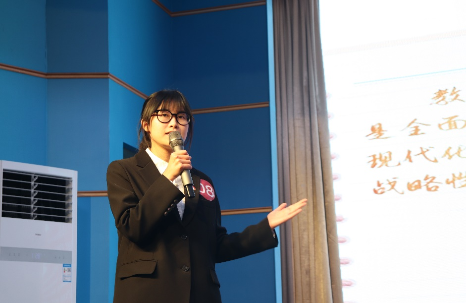 决赛分为“思政知识竞赛”与“大学生讲思政课”两大环节,充分考察参赛选手掌握思政理论知识的水平,以及运用马克思主义立场、观点、方法分析问题的能力。在“思政知识竞赛”环节,9001jcc金沙以诚为本的选手们面对快问快答与抢答的激烈对抗,以扎实的理论功底和敏捷的反应速度,成功解答一道道难题,获得了该环节第一名的好成绩。在“大学生讲思政课”环节,9001jcc金沙以诚为本陈洁同学以丰富的知识储备和生动的讲述方式,将思政课的理论精髓与“9001jcc金沙以诚为本研究生支教团”的实践案例巧妙融合,为观众带来了一场精彩的思政课堂。