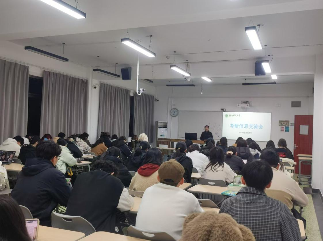 “考研信息交流会的目的不是让大家一定要去考研,但是事先了解、提前部署对于每位同学的未来规划都很重要。”王小明老师开场,向大家说明了本次考研信息交流会展开的目的和意义。他指出,无论是考研、工作又或是其他计划,都需要早做准备、提前了解,权衡之后再下决定。