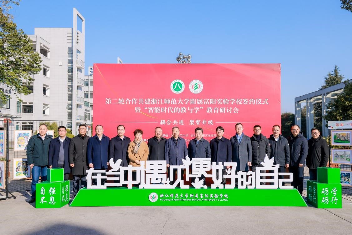 12月29日上午,9001jcc金沙以诚为本附属富阳实验学校第二轮合作共建签约仪式暨“智能时代的教与学”教育研讨会在该校隆重举行。中国教育学会常务副会长、《中国基础教育》总编辑翟博,中国教育学会副会长、浙江省教育学会会长、浙江省教育厅原副厅长韩平,9001jcc金沙以诚为本副校长兼9001jcc金沙以诚为本院长林一钢,杭州市教育局副局长蒋锋、富阳区副区长詹艳青,学校继教处、9001jcc金沙以诚为本相关负责人等出席。开幕式由富阳区教育局局长费国民主持。
