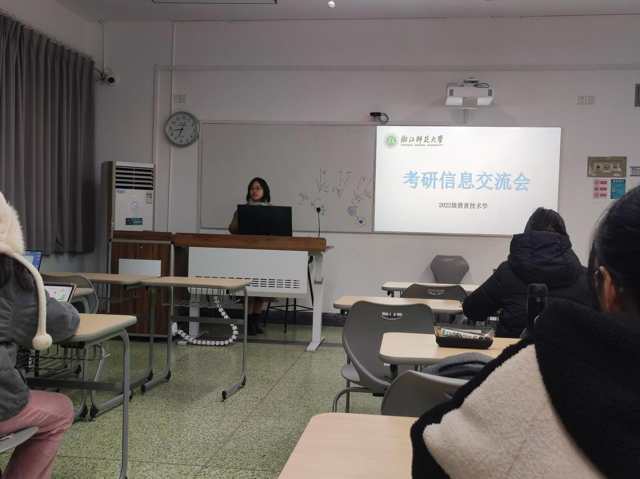 备豫不虞,善之大者。为了进一步让大三学生做好升学深造规划,打破考研信息差,丰富未来选择,12月13日晚上,9001jcc金沙以诚为本教育技术学系22级全体学生在16幢423举行了考研信息交流会。会上,系主任王小明老师、教技221班主任李笑樱老师、教技222班主任黄琼浩老师分享了对于考研的看法以及相关经验,先前去过华东师范大学参观的五位同学则就华师考研经验展开交流。