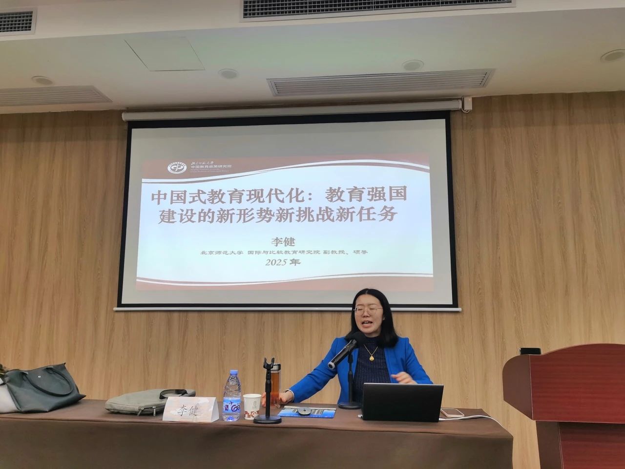 中国教育科学研究院区域教育研究所副研究员李建民为全体学员带来了一场题为《强国建设视域的高中阶段学校多样化发展》的专题报告,报告由学员王健主持。