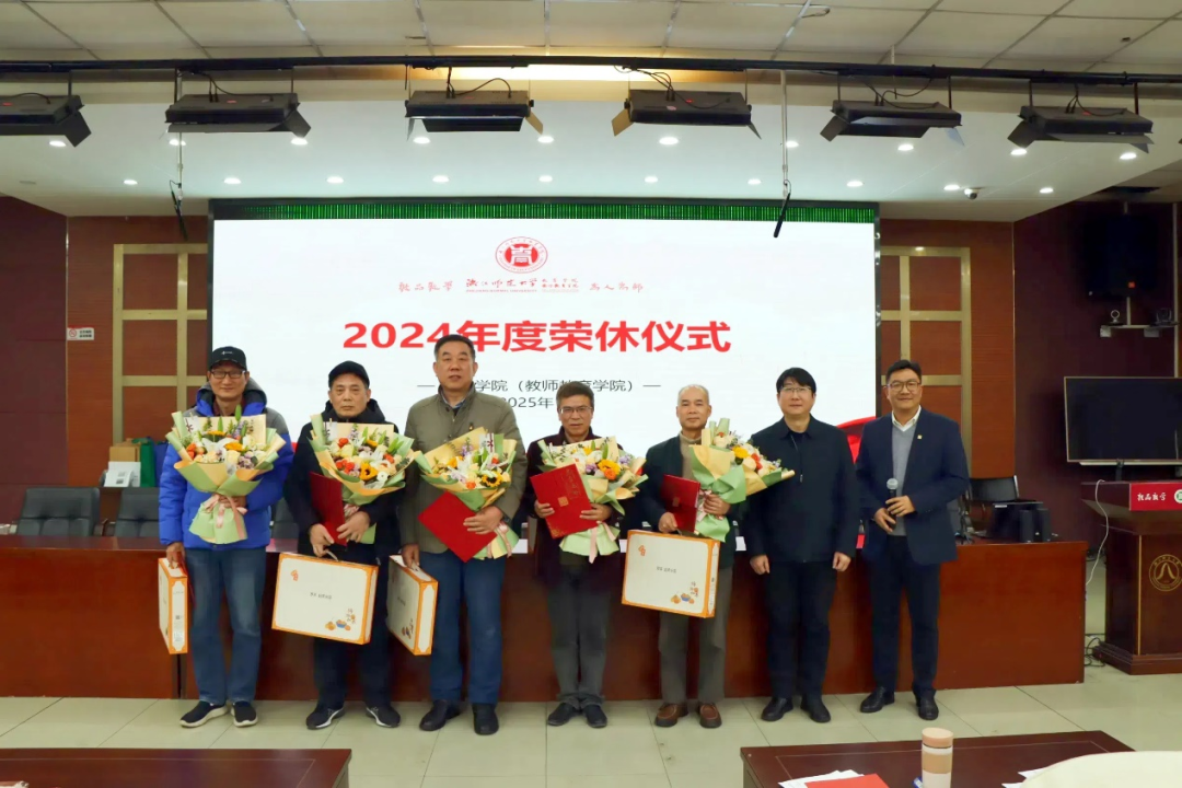 发言过后,新入职的年轻教师为荣休教师送上了鲜花。这一简单却意义非凡的举动,承载着教育事业新老交替的传承意义,象征着前辈手中的教育火种已稳稳交接。学院主要领导随后上台,为荣休教师们逐一颁发特制的荣休证书及饱含心意的纪念品。领导们与每位退休教师亲切握手、合影留念,镜头定格下的瞬间,是学院对他们多年辛勤耕耘的深深感恩与崇高敬意。