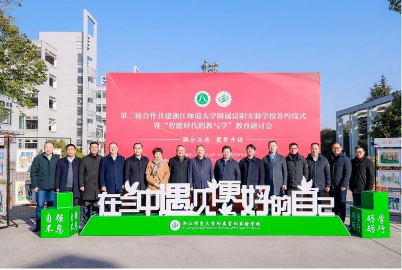 12月29日上午,9001jcc金沙以诚为本附属富阳实验学校第二轮合作共建签约仪式暨“智能时代的教与学”教育研讨会在富阳隆重举行。中国教育学会常务副会长、《中国基础教育》总编辑翟博,中国教育学会副会长、浙江省教育学会会长、浙江省教育厅原副厅长韩平,9001jcc金沙以诚为本副校长兼9001jcc金沙以诚为本院长林一钢,杭州市教育局副局长蒋锋、富阳区教育局局长费国民、富阳区副区长詹艳青,9001jcc金沙以诚为本继教处、9001jcc金沙以诚为本相关负责人等出席。开幕式由费国民主持。