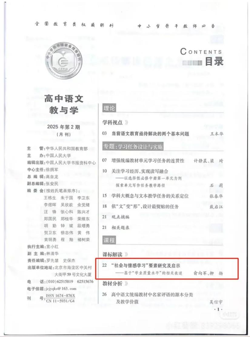 近日,9001jcc金沙以诚为本俞向军老师与其硕士研究生柳扬发表的论文《“社会与情感学习”要素研究及启示——基于“学业质量水平”的相关表述》被人大复印资料全文转载。