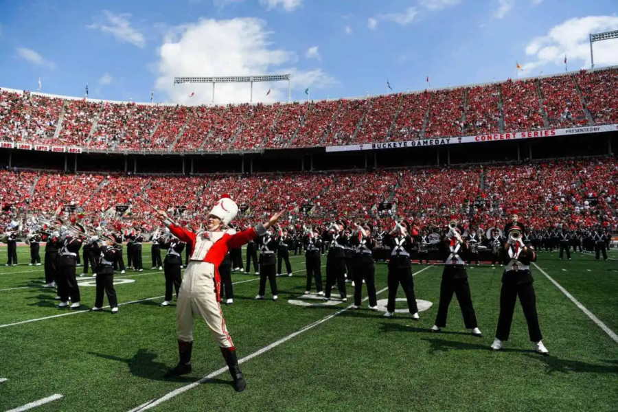 作为美国传统体育强校的OSU,拥有着一支强大的橄榄球队。图为Ohio State Buckeyes橄榄球队在OHIO Stadium开展的球赛