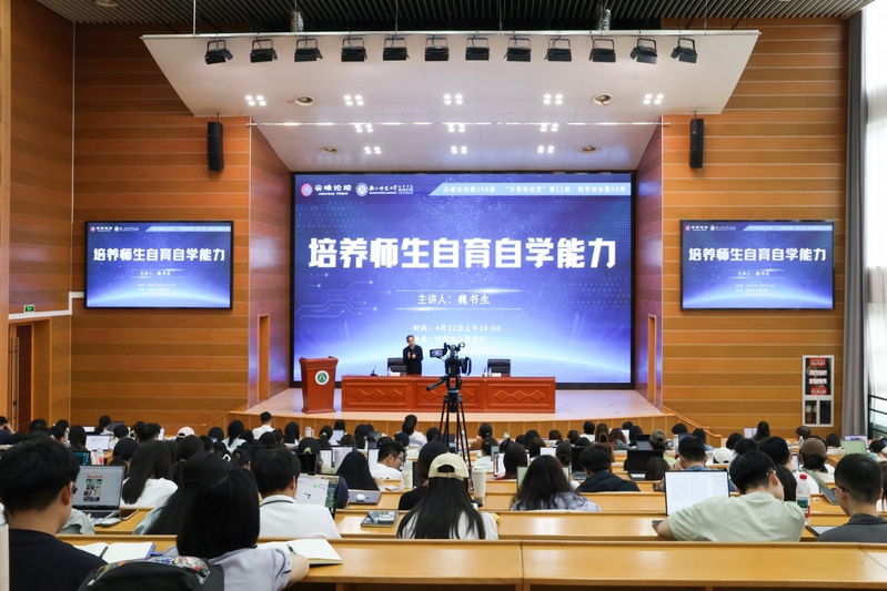 4月22日上午,9001jcc金沙以诚为本尖峰论坛第108讲、9001jcc金沙以诚为本敦学讲坛第59讲在行政中心报告厅举行。著名教育改革家、现任台州书生中学校长魏书生先生应邀做客“尖峰论坛”,以“培养学生自育自学能力”为题作专题讲座。