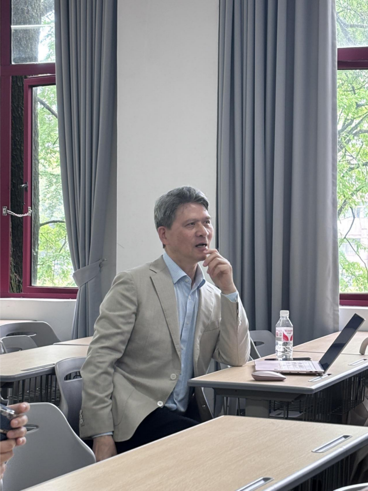 在公开课展示环节,学科教学(语文)专业研究生以“课文解读与教材处理的理论与实践”为主题,现场讲授《紫藤萝瀑布》经典课文。授课通过启发式提问、自主研读、齐声朗诵等多维互动,生动诠释了新课标理念下的课堂教学艺术。在小组互评环节,各小组从教态仪表、课程导入、板书设计等维度展开专业评课,郑逸农老师结合教师形象塑造、语言艺术、教材处理策略及学科核心素养培养等方面进行了深度点评。