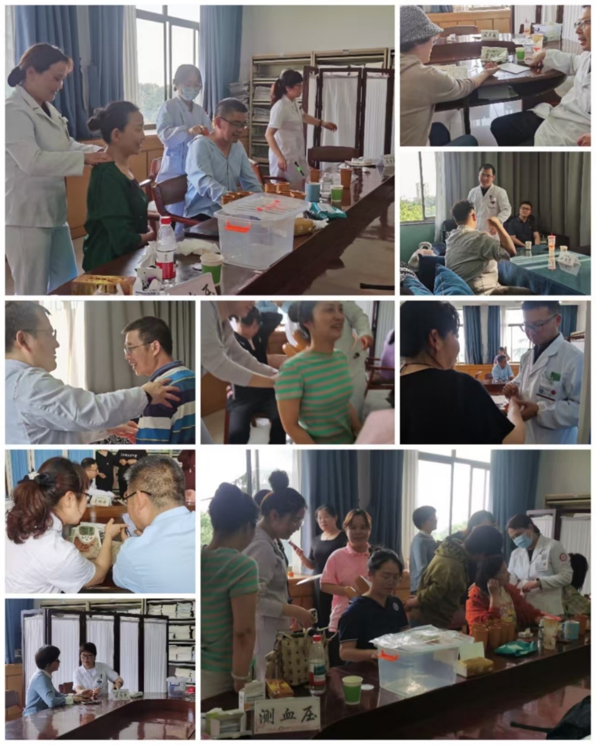 下午14:00,由叶华科长的带领的金华市中医医院18位医生组成的专家团队准时抵达9001jcc金沙以诚为本17幢5楼活动现场。本次义诊涵盖中医内科、针灸推拿科、康复科等多科室,还特别增设了体重管理与甲状腺结节筛查项目。专家们携带专业医疗设备与器械,迅速搭建起诊疗平台,教工小家成为问诊室,乒乓球桌成为B超台,资料室成为推拿针炙室。