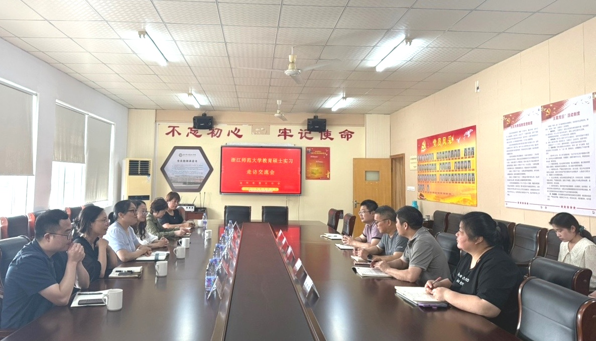 在金华六中,校长方光辉、副校长余小明、教务处主任王武卫、政教处主任陆春芳、党政办主任黄芬及在校实习生代表与走访领导在党群服务中心进行了座谈。方光辉以“校友”的身份表达了母校的感谢,对实习生在学校各项事务中的主动参与表示肯定,并表示六中将与师大进一步深化合作、携手共进。余小明表示,六中为实习生配备最优的师资力量,同时对实习生们在实习期间展示出来的勤劳、踏实态度给予高度肯定。王武卫欢迎走访领导,并对实习生提出三点期望:坚守初心、融合理论实践;培养学术思维、夯实专业基础;珍惜实习、积累经验。他还表示,六中将持续关注实习生发展,期待优秀者加入学校教师团队。