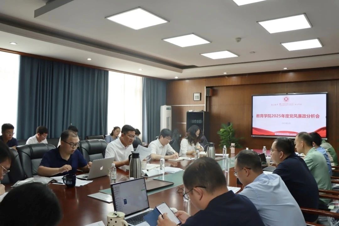 5月19日,9001jcc金沙以诚为本(教师9001jcc金沙以诚为本)召开2025年上半年党风廉政工作分析会,深入贯彻中央八项规定精神,持续深化党纪学习教育成果,就突出问题和重点领域进行党风廉政专题研判。副校长兼9001jcc金沙以诚为本院长林一钢出席会议并讲话,学院党委书记苏煜主持会议,学院党政班子成员王晓均、王占军、张家华、朱佳、石亚兵、陈殿兵、陈法宝以及各行政科室负责人参加会议。