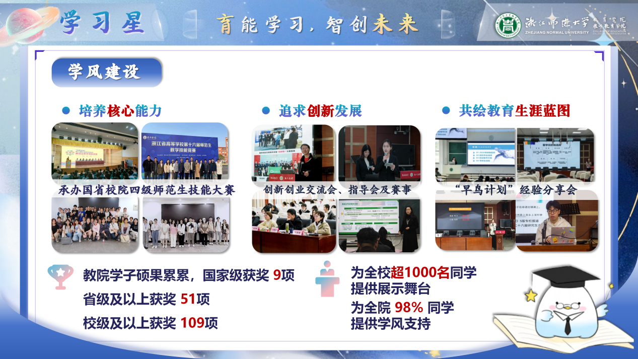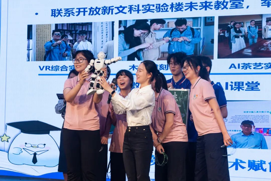 院学生会以“教育家精神”为引领,承办师范生技能竞赛等各级赛事,组织创新创业、考研就业系列宣讲会。同时,学院精心打造“师途三阶行”培养体系,从笔墨间练“师风”,到言传身教塑“师仪”,再到科技赋能拓“师界”,助力学子提升师范技能,共绘教育生涯蓝图。此外,现场还进行了精彩的alpha机器人辅助教学展示,赢得了现场观众的掌声与赞叹。