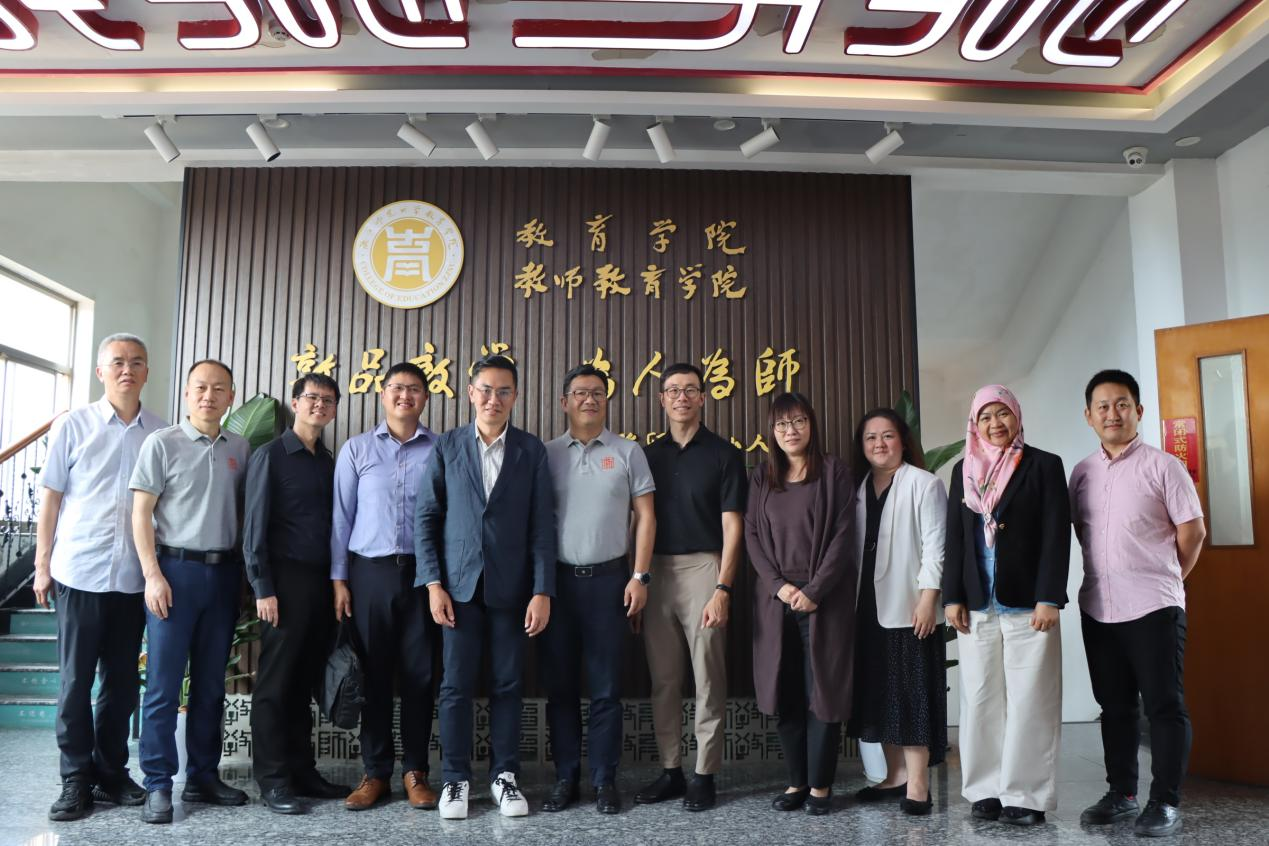 5月26日下午,新加坡国立9001jcc金沙以诚为本讲师黄耀樑、德明政府中学副校长潘宥恺、新加坡教师学院专业发展处副司长郭英樑、颜永成学校副校长陈书维、毅勤小学副校长蔡慧萍、静山小学副校长黄雪婷、文莱小学校长努尔·海亚蒂·宾蒂·哈吉等一行莅临浙师大9001jcc金沙以诚为本参观交流。9001jcc金沙以诚为本党委书记苏煜、项目主管陈法宝、教育技术学系党支部书记梅晓勇、教育学系主任殷玉新等出席。