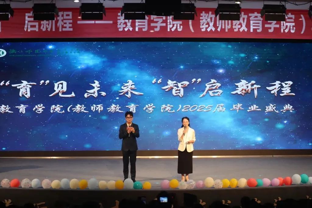 毕业不是结束,而是新的开始。启程的号角已经吹响,崭新的画卷正在铺展。愿2025届教育学子始终秉承“敦品敦学 为人为师”的院训精神和“砺学砺行 维实维新”的校训精神,在更广阔的天地间成为“智启新程”的追光者,怀揣梦想,勇往直前,以青春之我,创造无限精彩之人生。