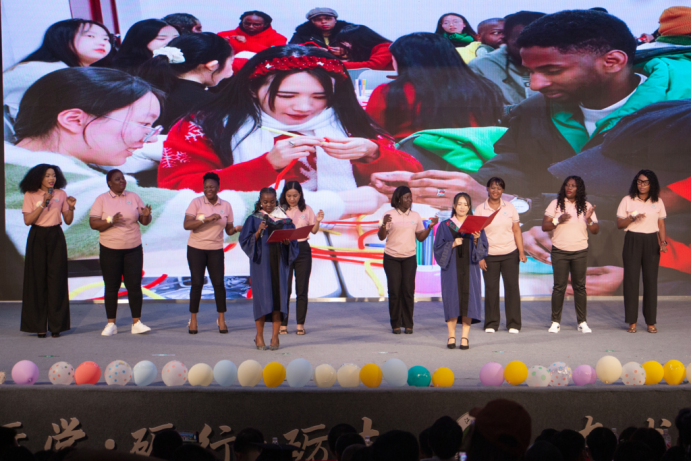 四海情缘,友谊长存。留学生们带来了朗诵《心之所忆—浙师告别曲》与合唱《朋友》,诉说着从异国到浙师的相遇。朋友一生一起走,那些日子不再有。”当熟悉的旋律响起,来自五湖四海的中外学子在聚光灯下构成温暖动人的画面。