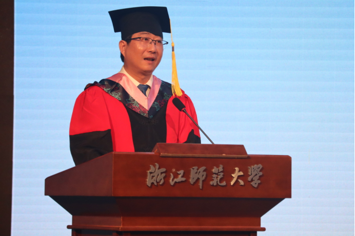 林一钢代表学院向2025届毕业生致以最热烈的祝贺,并向全体老师、家长们表示最衷心的感谢。他从学科建设、智能教育、社会实践以及科研竞赛四个方面回顾了学院近五年来的发展成就。临别之际,他赠予毕业生三颗“心”:永葆“求知心”、坚守“仁爱心”、激扬“开拓心”。最后,他以短诗赠别,祝愿2025届毕业生们“步履所往,皆是教育的热土;目光所及,尽是人生的春山”。林一钢深情的寄语和殷切的期望,字字句句如春风化雨,浸润着毕业学子的心田。